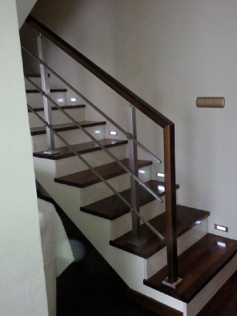 Balustrada połączona z drewnem egzotycznym jest nowoczesna i trwała.